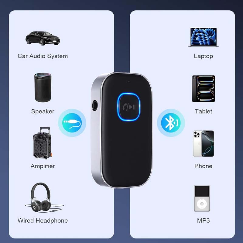 EASY TO USE AND UNIVERSAL COMPATIBILITY: Simply plug into your vehicle's AUX port for instant setup. This receiver is designed for broad compatibility with various car models and mobile devices, making upgrading your audio system straightforward.