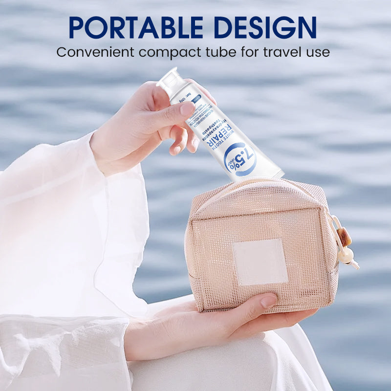 Dank des schlanken und sicheren Tubendesigns lĂ€sst sich das Produkt leicht fĂŒr Reisen einpacken oder in der Tasche mitnehmen, sodass Sie Ihre Mundpflegeroutine ĂŒberall fortsetzen können.