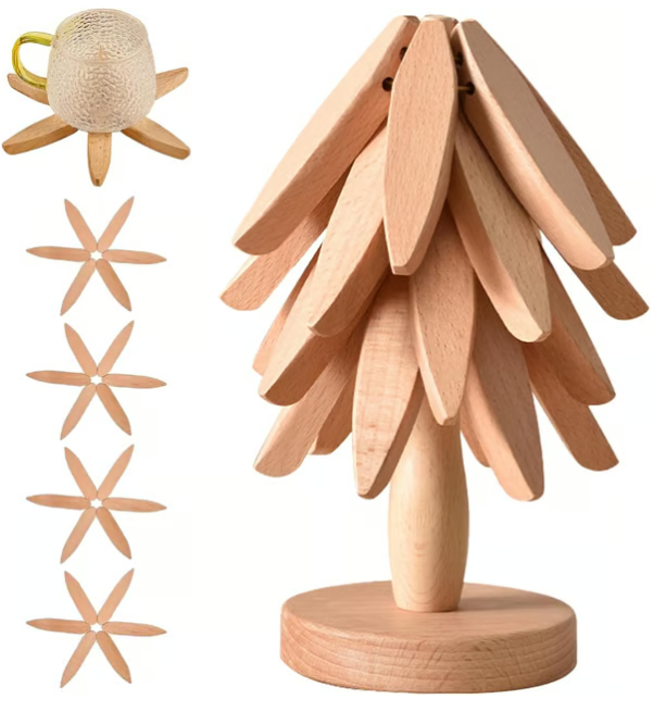 Lässt sich wie ein Mini-Weihnachtsbaum zusammenfalten und benötigt wenig Platz. Ideal als Untersetzer oder Topfuntersetzer – perfekt für Feiertage oder Geburtstage!