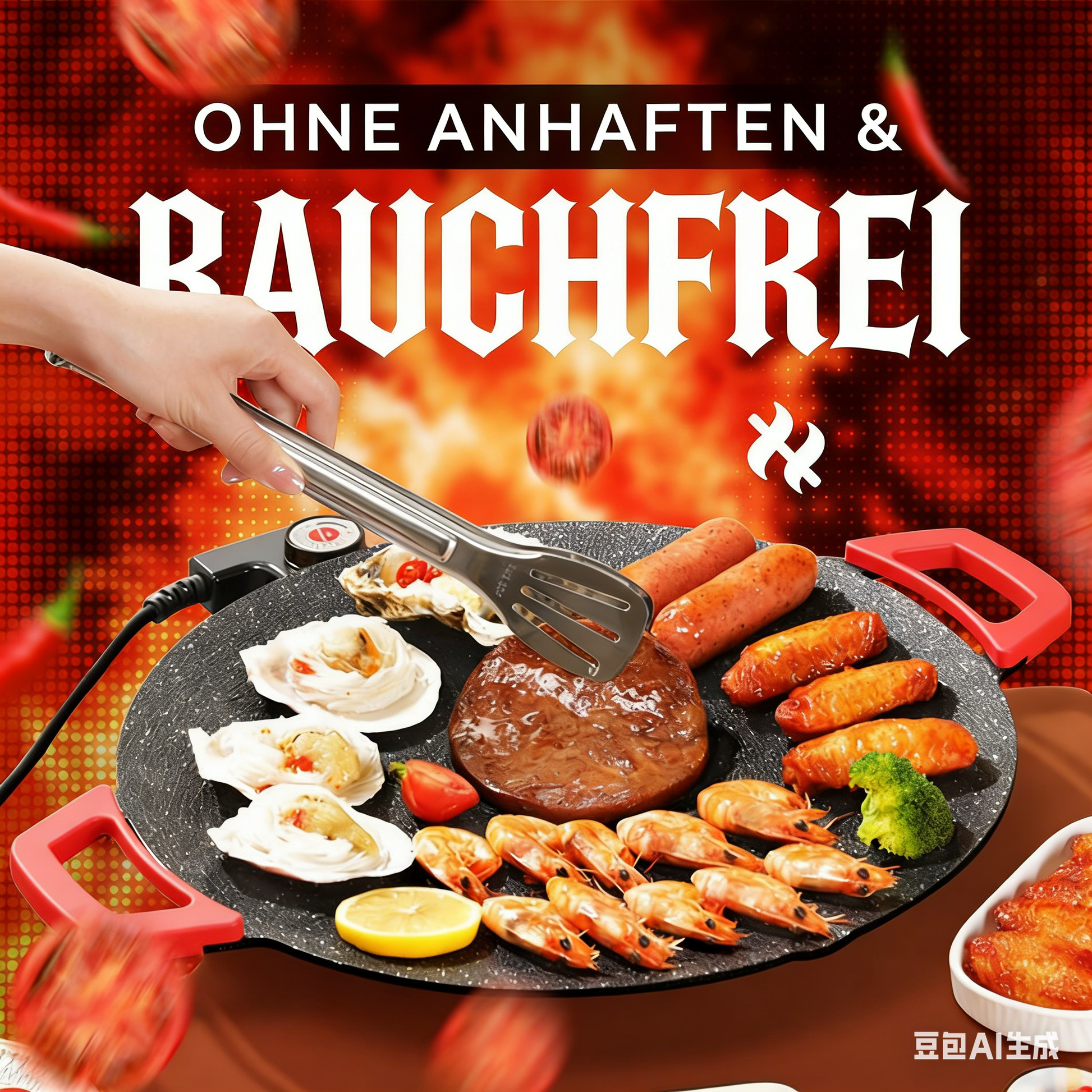 800-W-tragbarer Grill, rauchfrei, antihaftbeschichtete Grillplatte, einstellbare Temperaturregelung, Universalgrillplatte, ideal zum Kochen beim Camping, Picknick oder auf Reisen