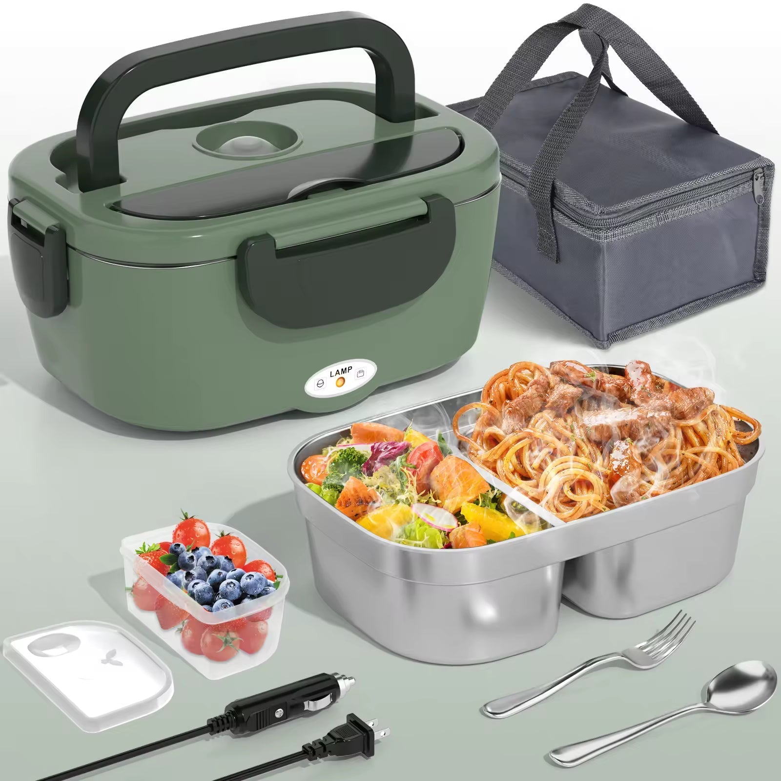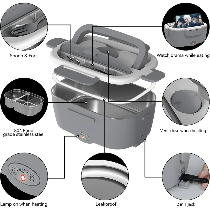 Tragbarer Selbstheizender Essenswärmer - Duale Stromversorgung (220V Stecker/12V Auto) - Mit Isoliertasche - Ideal für Pendler, Camping & Arbeitsplatz